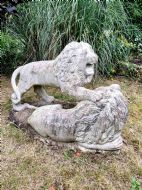 HAVING BEEN IN OUR GARDEN FOR THE LAST 25YEARS ITS TIME TO SELL THIS MAGNIFICENT PAIR OF ITALIAN PLAYFUL MARBLE LIONS. THEY MEASURE 138CMS L 104CMS H AND 83CMS DEEP. THESE MEASUREMENTS REGARDING DEPTH WILL BE MORE AS OVER THE YEARS THE PLINTH HAS SUNK. ORIGINALLY PURCHASED BY US IN THE 1990 S FROM PHILLIPS ( EX SALE OF A MANOR HOUSE NEAR CHESTER) THE PHOTOS ARE ACCURATE. IF YOU NEED A SPECTACULAR PIECE OF ITALIAN HISTORY AND A STATEMENT PIECE FOR ANY GARDEN THESE ARE IT. UK DELIVERY TO BE DISCUSSED ALL FORMS OF PAYMENT INCLUDING CCS ETC LAPADA_CINOA MEMBERS SINCE1985 ESTABLISHED IN1977 IN CHESTER ALL CREDIT CARDS AND PAYPAL ACCEPTED ALL ITEMS BACKED BY LAPADA GUARANTEE ALL CONSUMER RIGHTS OBSERVED