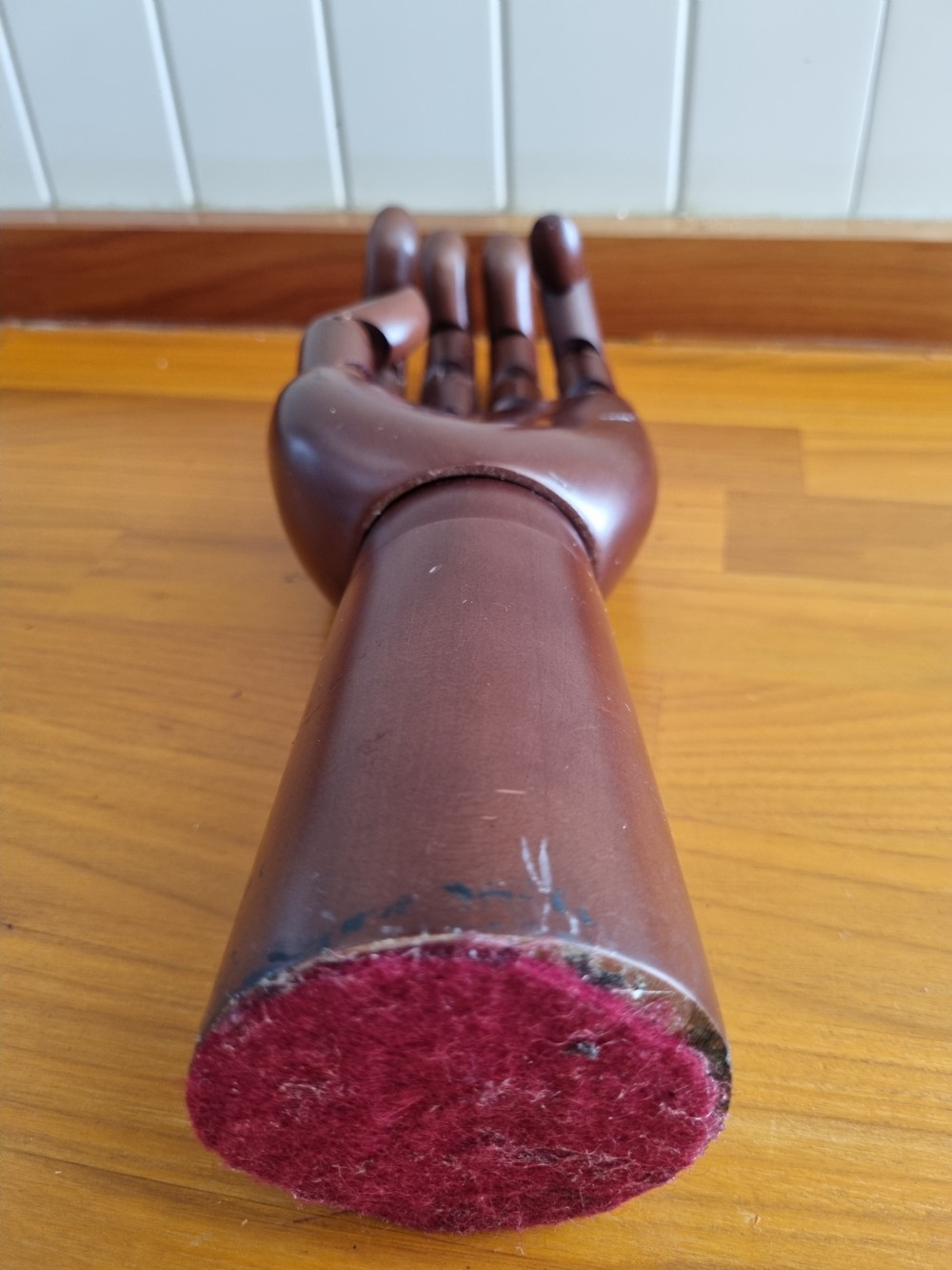 FROM A COLLECTION OF ODDITIES A 32CMS H WOODEN ARTICULATED GLOVE DISPLAY STAND.