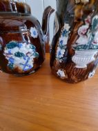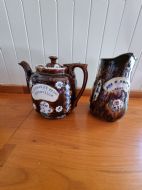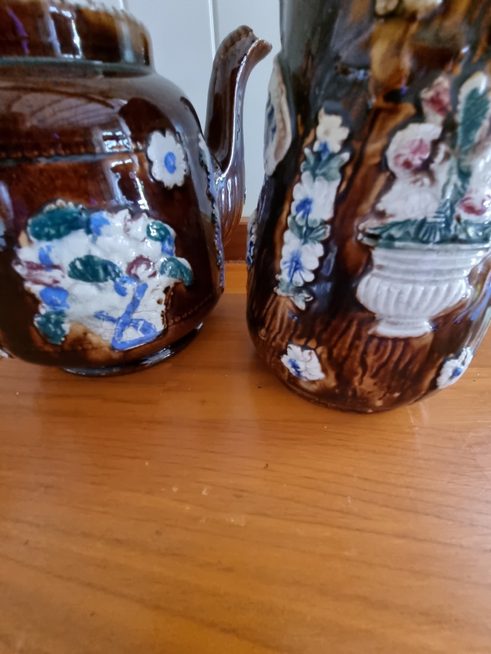 2 19THC BARGEWARE PIECES TEAPOT AND JUG