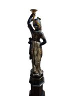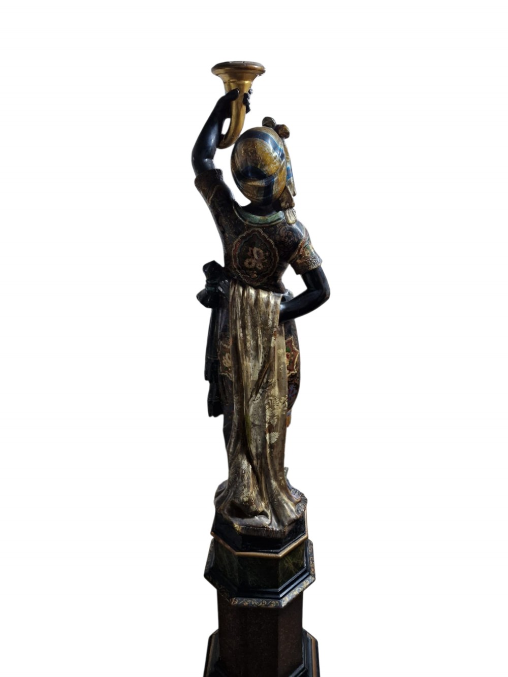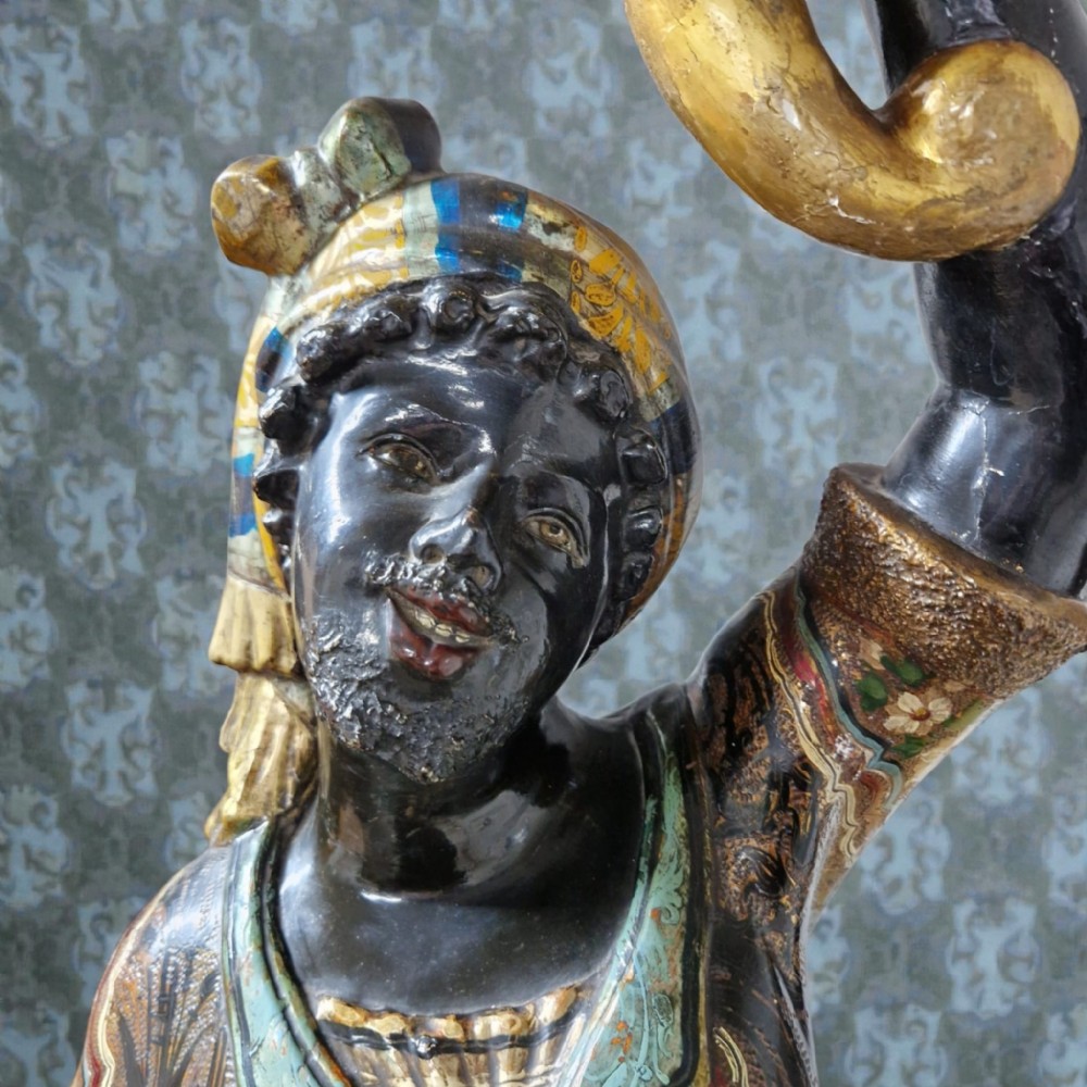 A WONDERFULLY ORIGINAL DECORATED 19THC " BLACKAMOOR" OR MOORISH FIGURE ,UNUSUAL IN THE FACT THAT IT HASNT BEEN ELECTRIFIED!! HE STANDS 185CMS HIGH ,A REAL STATEMENT " COUNTRY HOUSE" PIECE. THE DECORATION IS RICH AND UNTOUCHED. AND HAS ASSUMED A SUPER PATINATION OVER THE YEARS WE ARE DATING THIS AS AROUND 1880 . AND PROBABLY FRENCH./MOORISH EXTREMELY HARD TO FIND IN THIS CONDITION. UK DELIVERY INCLUDED ALL FORMS OF PAYMENT INCLUDING CCS ETC LAPADA_CINOA MEMBERS SINCE1985 ESTABLISHED IN1977 IN CHESTER ALL CREDIT CARDS AND PAYPAL ACCEPTED ALL ITEMS BACKED BY LAPADA GUARANTEE ALL CONSUMER RIGHTS OBSERVED