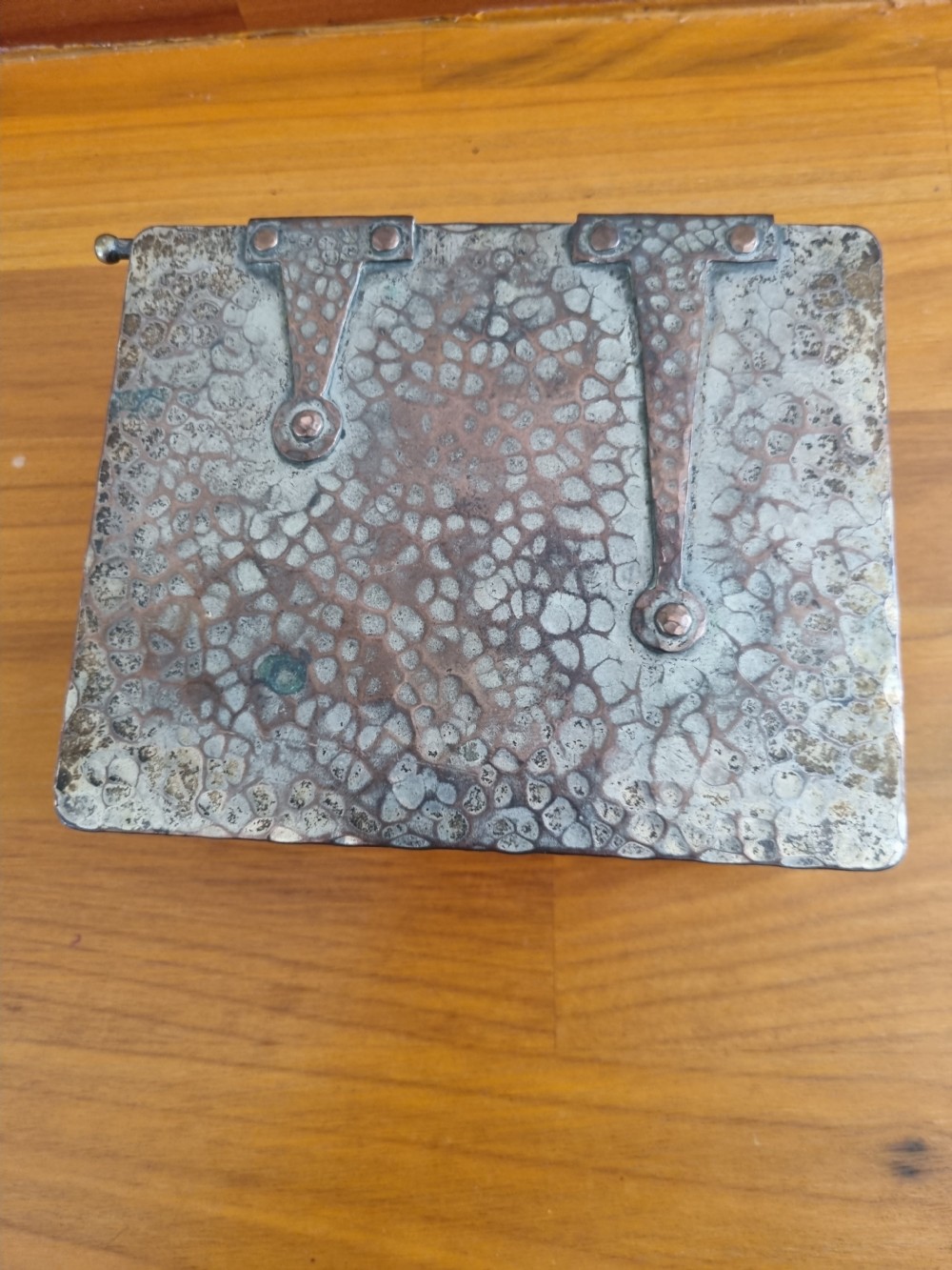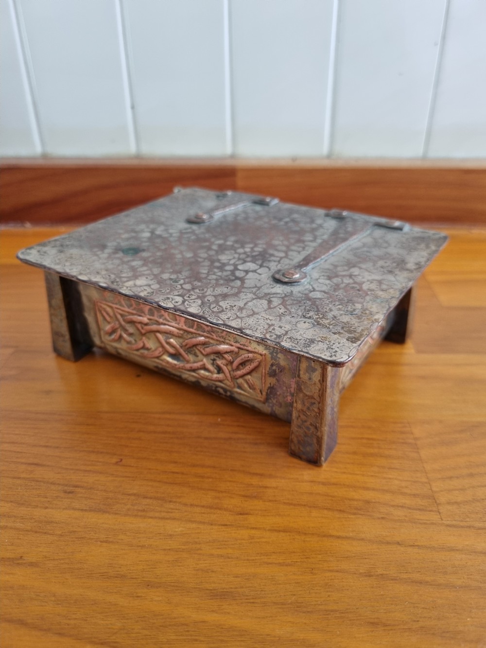 ARTS AND CRAFTS SMALL SILVERED BRASS AND COPPER BOX
