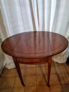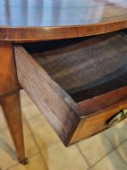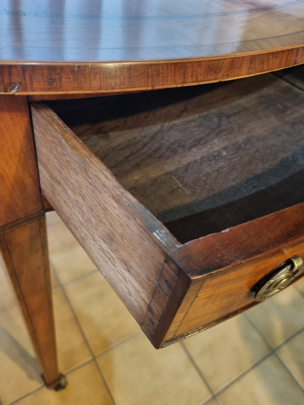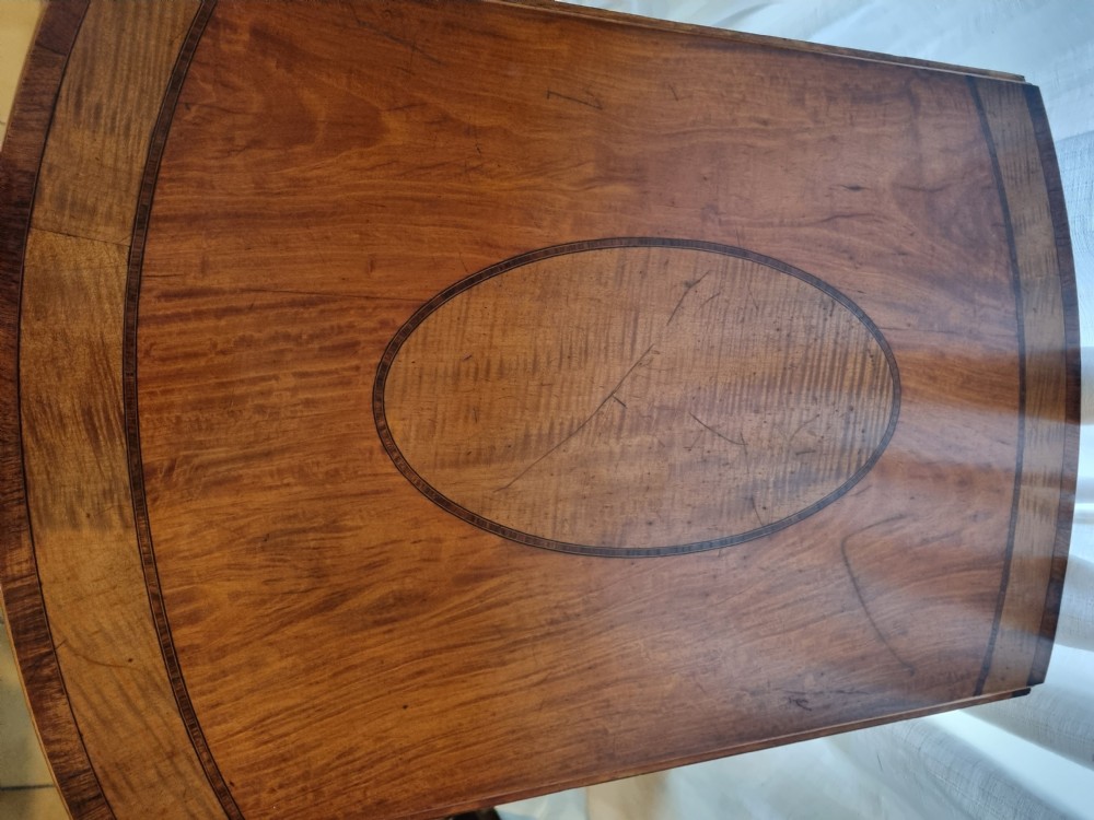 THE OVAL INLAID PANEL ON THE TOP IS A LIGHTER SATINWOOD SPECIMEN.