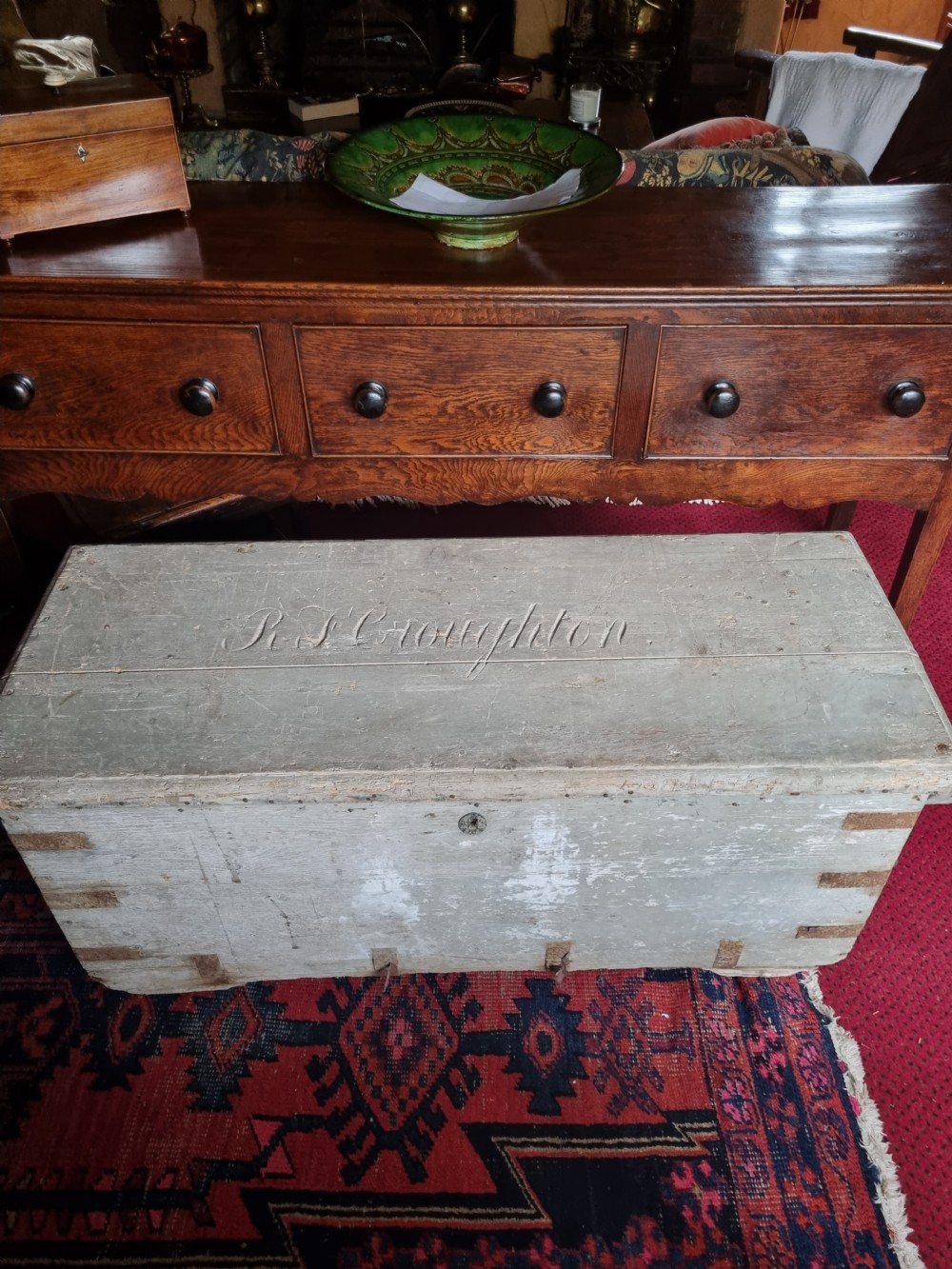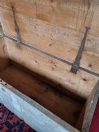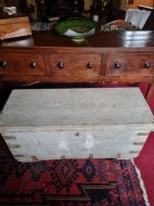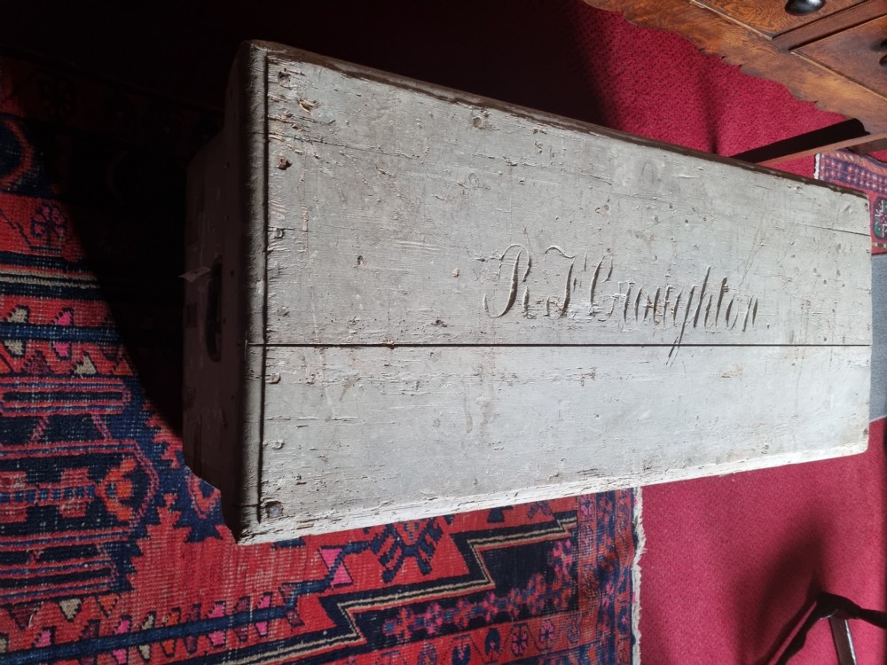 A 124CMS L 19THC ORIGINAL PAINTED PINE CHEST . POSSIBLY A SEAMAN,S CHEST WITH NAME CARVED ON THE LID. WE ARE DATING IT AS AROUND 1830 BUT COULD BE EARLIER. ALL THE METALWORK IS ORIGINAL AND NO REPAIRS OR REPLACEMENTS . READY TO BE REPURPOSED AS A LARGE COFFEE TABLE. CHILD,S TOY STORE OR ANYTHING IN BETWEEN. THE MEASUREMENTS ARE 124CMS L 53CMS H AND 52CMS D UK DELIVERY INCLUDED ALL FORMS OF PAYMENT INCLUDING CCS ETC LAPADA_CINOA MEMBERS SINCE1985 ESTABLISHED IN CHESTER IN 1977 ALL CREDIT CARDS AND PAYPAL ACCEPTED ALL ITEMS BACKED BY LAPADA GUARANTEE ALL CONSUMER RIGHTS OBSERVED