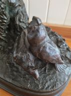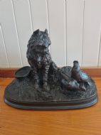 PIERRE JULES MENE 19THC BRONZE OF A DOG AND PIGEON FULLY SIGNED