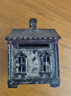 RARE SMALL CAST IRON " HOUSE" MONEY BOX 19THC