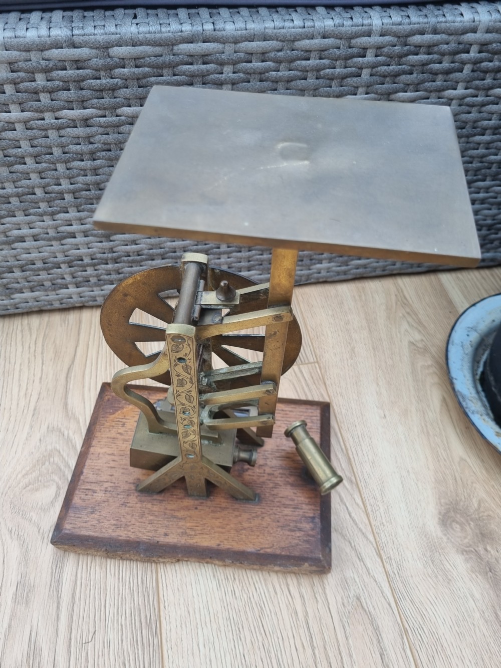 FROM A LOCAL RECENTLY CLOSED POST OFFICE A SUPER SET OF ANTIQUE BRASS P.O PARCEL SCALES WITH PRICES IN PENCE ( D) AND A MAKERS STAMP BEHIND THE BLACK ARROW.PIC3 THESE SCALES ARE COMPLETE AND ORIGINAL. THEY MEASURE 34CMS H AND 23CMS WIDE THEY DATE FROM AROUND 1900 AND HAVE THEIR ORIGINAL WOODEN BASE. COMPLETE WITH DECORATIVE ENGRAVING (SEE PICS) TO THE BRASS FITTINGS APPARENTLY THESE ARE RELATIVELY RARE AS ALWAYS OFFERED AT OUR NORMAL COMPETITIVE PRICE UK POSTAGE £10 ALL FORMS OF PAYMENT INCLUDING CCS ETC LAPADA_CINOA MEMBERS SINCE1985 ESTABLISHED IN1977 IN CHESTER ALL CREDIT CARDS AND PAYPAL ACCEPTED ALL ITEMS BACKED BY LAPADA GUARANTEE ALL CONSUMER RIGHTS OBSERVED