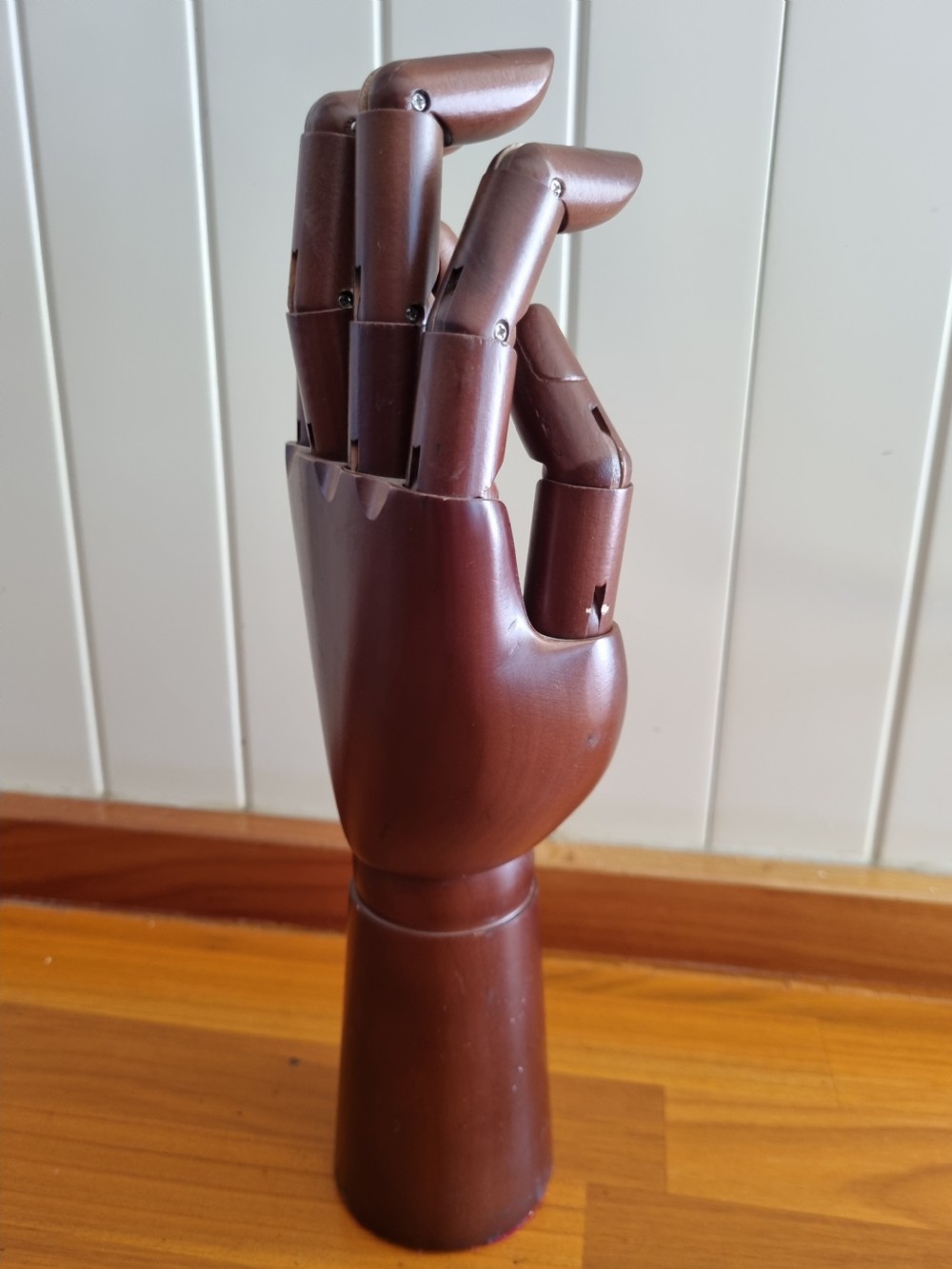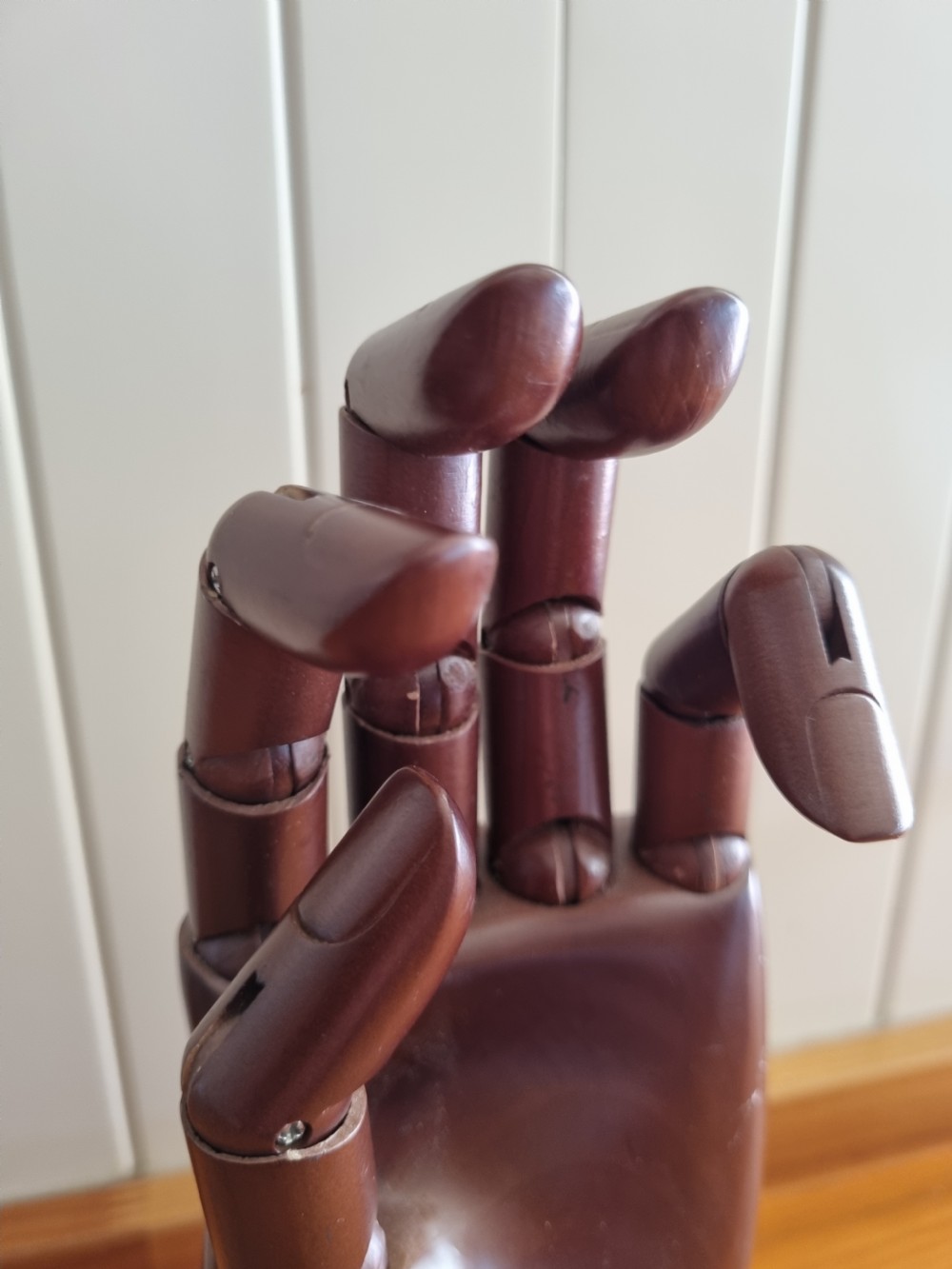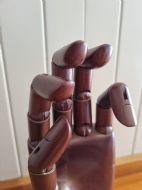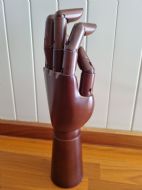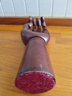 FROM A COLLECTION OF ODDITIES A 32CMS H WOODEN ARTICULATED GLOVE DISPLAY STAND.