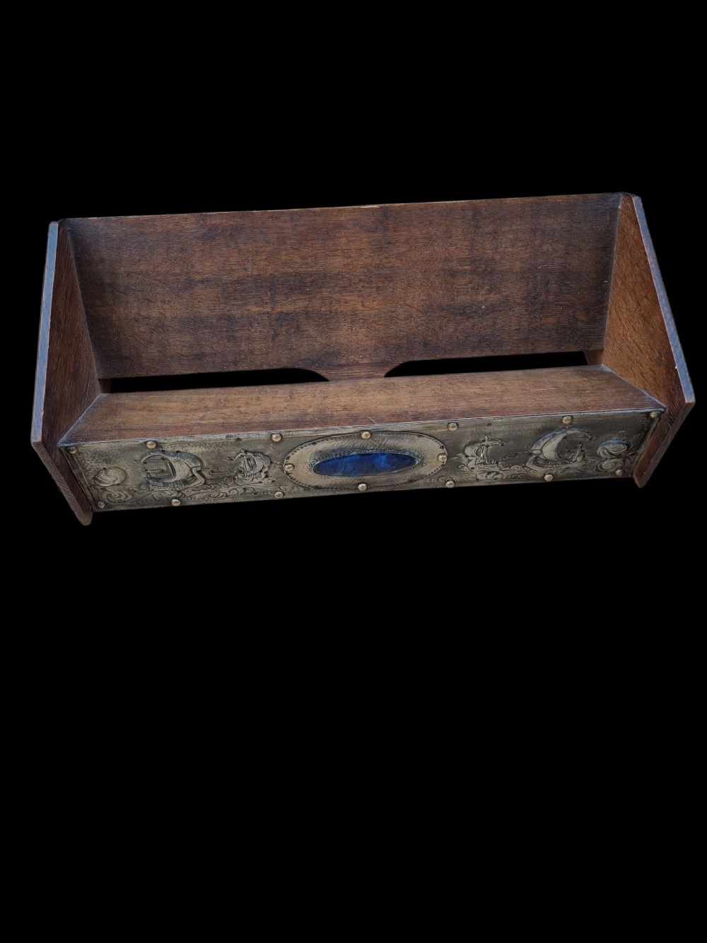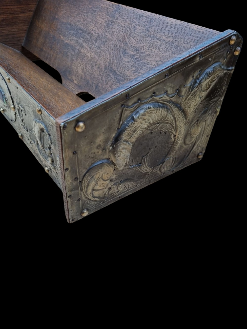 SUPERB ARTS AND CRAFTS OAK.AND BRASS BOOKTROUGH
