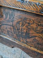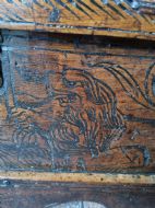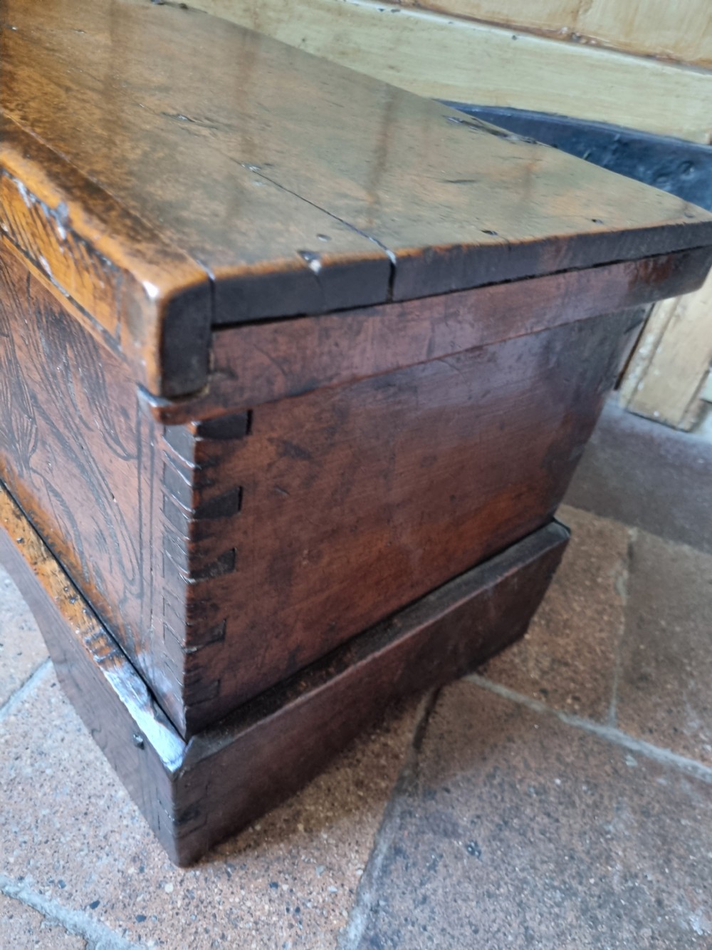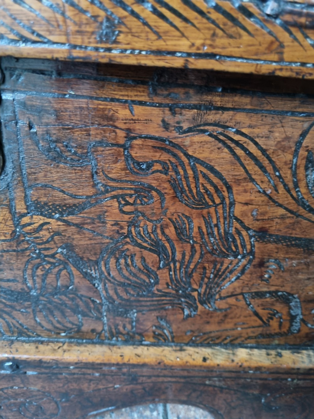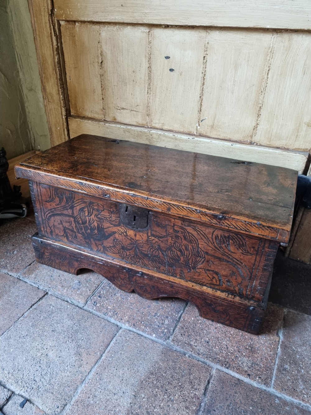 IN MY 48 YEARS OF DEALING IN QUALITY ANTIQUES THIS SMALL COMPLETELY ORIGINAL DECORATED CEDARWOOD COFFER IS A FIRST FOR ME. IT DATES FROM AROUND 1680 COULD BE EARLIER AND IS DECORATED WITH PENWORK MYTHICAL CREATURES ( DRAGONS?).IT MEASURES ONLY 67CMS LONG 34CMS HIGH AND 31CMS DEEP. I HAVE OWNED A COUPLE OF LARGE ONES BUT HAVE NEVER SEEN ONE OF THIS SIZE. ORIGINAL.EVERYTHING INCLUDING WIRE HINGES ETC. THE COLOUR IS AS THE PICTURES RICH AND DEEP .THE LAST PICTURE SHOWS THE DEPTH OF ITS PATINA . UK DELIVERY INCLUDED ALL FORMS OF PAYMENT INCLUDING CCS ETC LAPADA_CINOA MEMBERS SINCE1985 ESTABLISHEDIN1977 IN CHESTER ALL CREDIT CARDS AND PAYPAL ACCEPTED ALL ITEMS BACKED BY LAPADA GUARANTEE ALL CONSUMER RIGHTS OBSERVED