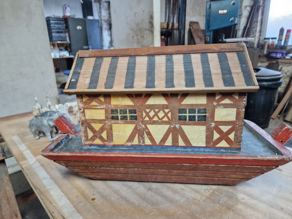 rare l19thc painted wooden noahs ark complete 11prs of animals