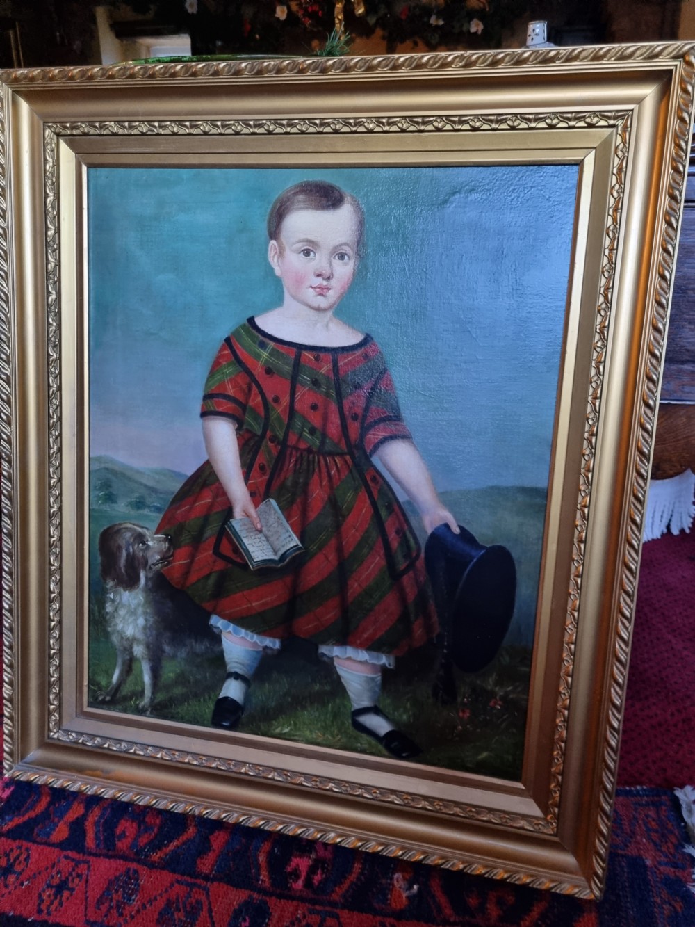 A 19THC OIL ON CANVAS OF A YOUNG CHILD IN FULLY RESTORED CONDITION MEASURING A HANDSOME 95CMS H BY 80CMS W. DATING FROM AROUND THE EARLY TO MID 19TH CENTURY THIS NAIVE PICTURE HAS A GILTWOOD FRAME ( ALSO RESTORED) . A CHARMING COUNTRY HOUSE PAINTING. UK DELIVERY INCLUDED ALL FORMS OF PAYMENT INCLUDING CCS ETC LAPADA_CINOA MEMBERS SINCE1985 ESTABLISHED IN1977 IN CHESTER ALL CREDIT CARDS AND PAYPAL ACCEPTED ALL ITEMS BACKED BY LAPADA GUARANTEE ALL CONSUMER RIGHTS OBSERVED
