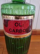 A LARGE 19THC RIBBED GREEN GLASS CHEMIST JAR AND LID. IN.PERFECT CONDITION.C1880 AND MEASURING 29CMS H AND 10CMS W LABELLED OL. CARBOL UK POSTAGE INCUDED ALL FORMS OF PAYMENT INCLUDING CCS ETC LAPADA_CINOA MEMBERS SINCE1985 ESTABLISHED IN1977 IN CHESTER ALL CREDIT CARDS AND PAYPAL ACCEPTED ALL ITEMS BACKED BY LAPADA GUARANTEE ALL CONSUMER RIGHTS OBSERVED