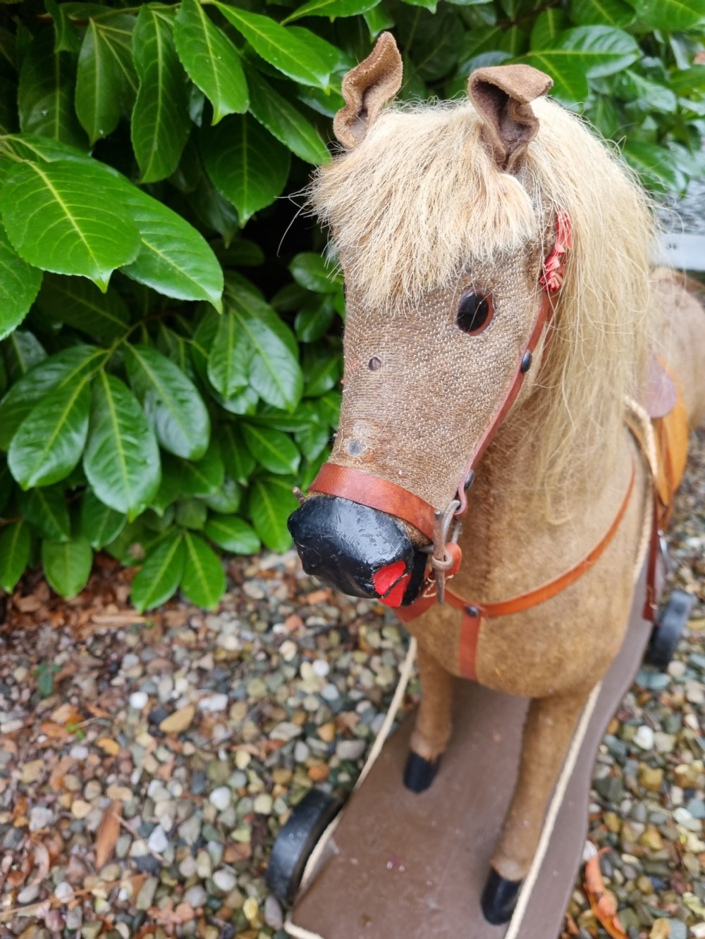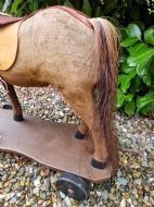 A LOVELY 19THC FOLKSY PULL ALONG HORSE ON WOODEN WHEELS . IT MEASURES 74CMS LONGAND 89CMS HIGH. IN WORN BUT PERFECT CONDITION ,THE LEATHER SADDLE IS A LATER REPLACEMENT. A REALLY GOOD EXAMPLE C1880. THESE COUNTRY HOUSE PIECES ARE RARELY ON THE MARKET AS THEY TEND TO BE FAMILY HEIRLOOMS UK DELIVERY INCLUDED ALL FORMS OF PAYMENT INCLUDING CCS ETC LAPADA_CINOA MEMBERS SINCE1985 ESTABLISHED IN1977 IN CHESTER ALL CREDIT CARDS AND PAYPAL ACCEPTED ALL ITEMS BACKED BY LAPADA GUARANTEE ALL CONSUMER RIGHTS OBSERVED