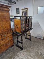 17THC ORIGINAL SPANISH RED TORTOISESHELL CABINET ON STAND