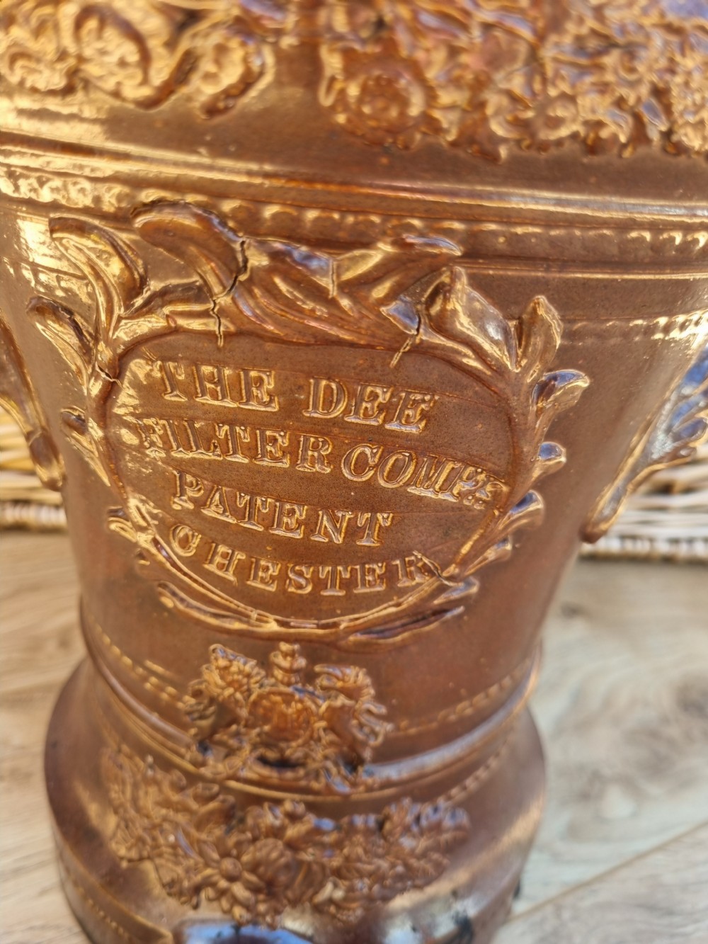 a rare dee filter company patent chester stoneware water vessel