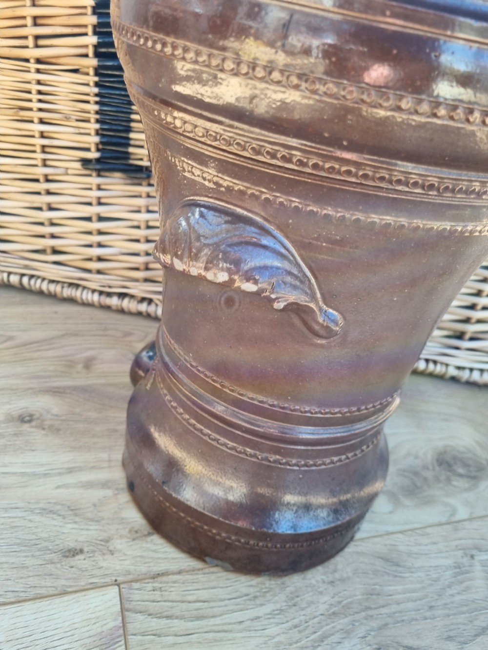 IT HAS NO MAKER,S MARKS BUT THIS TYPE OF STONEWARE IS PROMINENT IN DERBYSHIRE.