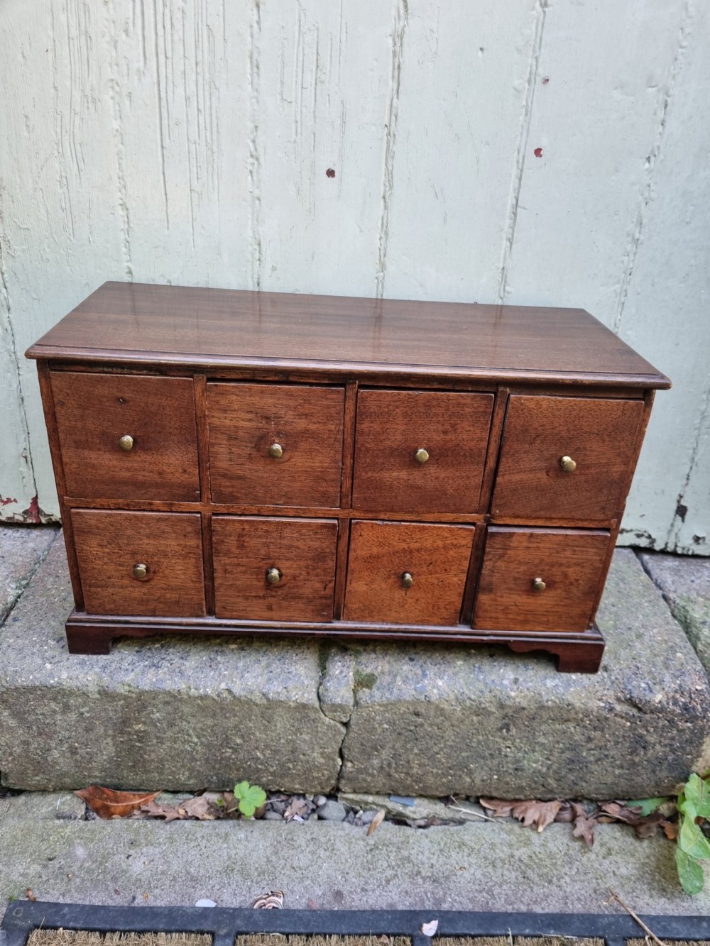 FROM THE SAME HOUSE AS ANOTHER SET LISTED A SUPER GEORGIAN SET OF 8 FRUITWOOD SPICE DRAWERS COMPLETE WITH SMALL ORIGINAL BRASS KNOBS. THEY MEASURE 43CMS L 18CMS D AND 26CMS HIGH. DATING FROM AROUND 1800 THEY ARE BEAUTIFULLY MADE AND WILL FREE STAND .WE CALL THEM SPICE DRAWERS BUT COULD BE USED FOR A VARIETY OF USES. AS ALWAYS OFFERED AT OUR NORMAL REALISTIC PRICE DELIVERY INCLUDED ALL FORMS OF PAYMENT INCLUDING CCS ETC LAPADA_CINOA MEMBERS SINCE1985 ESTABLISHED IN1977 IN CHESTER ALL CREDIT CARDS AND PAYPAL ACCEPTED ALL ITEMS BACKED BY LAPADA GUARANTEE ALL CONSUMER RIGHTS OBSERVED