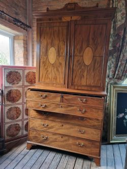 A VERY UNUSUAL OLD GROCERS PAINTED COUNTER/CUPBOARD IN SOUND CONDITION WITH OBVIOUS NORMAL WEAR AND TEAR .