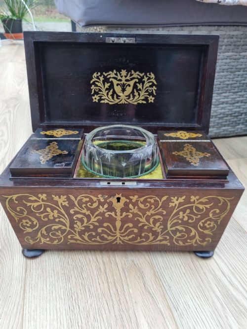 EARLY 19THC PROFUSELY BRASS INLAID ROSEWOOD TEA
